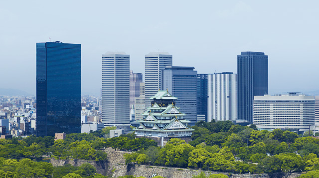 本社の近くに大阪城公園があり、社内の窓からも大阪城が見えます。